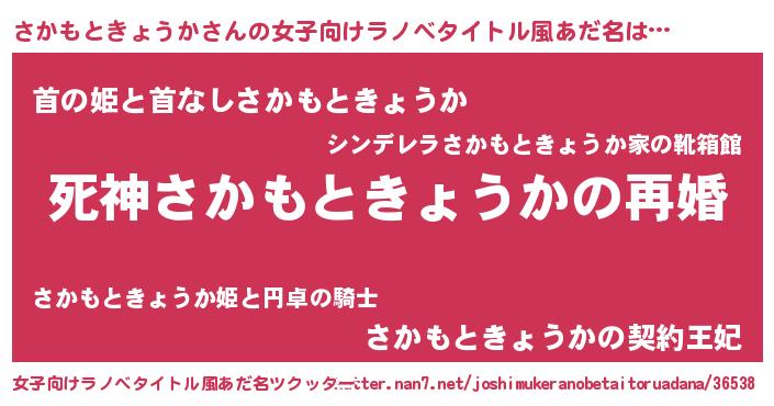 | 男性向けラノベタイトル風あだ名 | 『ノーゲーム・ノーサカモトキョウカ』 |