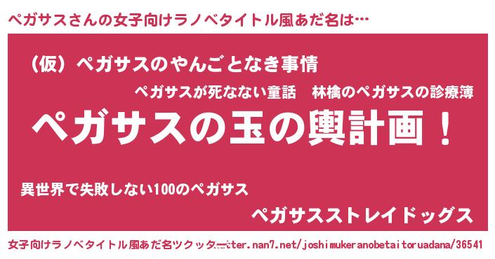 | 男性向けラノベタイトル風あだ名 | 『転生したらペガサスだった件』 |