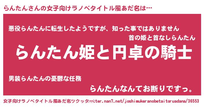 | 意味不明あだ名 | 『ペロリンらんたん』『自称らんたん』 |