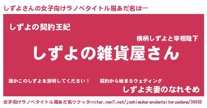| ファンタジー風あだ名 | 『エターナルシズヨー』『シズディッシュ』 |