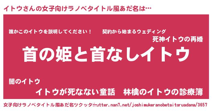 | 胡散臭い通販商品みたいなあだ名 | 『必ず成功するブレスレット…その名も「イトウ」』 |
