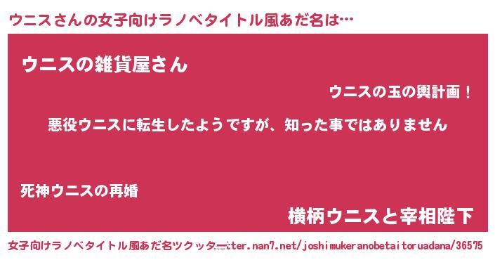 | 意味不明あだ名 | 『住所不定無職ウニス(77歳)』 |