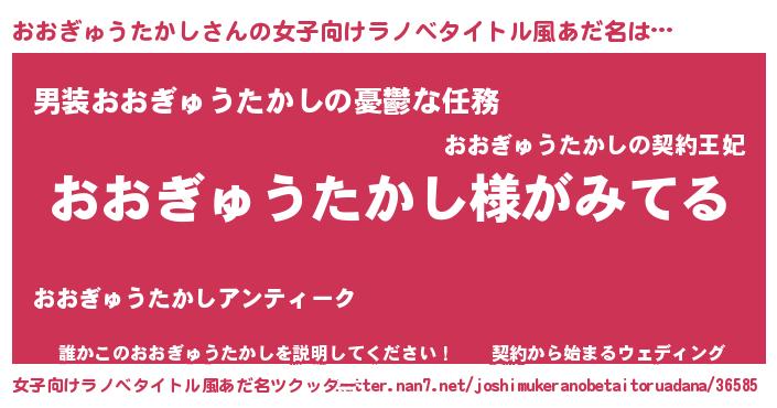 | 意味不明あだ名 | 『とにかく怪しいおおぎゅうたかし』 |