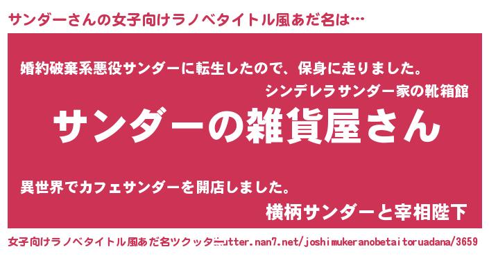 | 胡散臭い通販商品みたいなあだ名 | 『幸せが訪れる高級そうな皿…その名も「サンダー」』 |