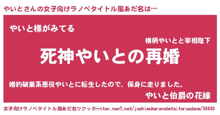 | 男性向けラノベタイトル風あだ名 | 『ノーゲーム・ノーヤイト』 |