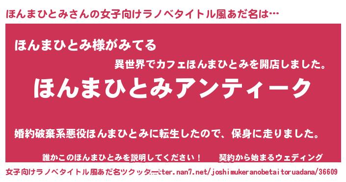 | 男性向けラノベタイトル風あだ名 | 『魔法科高校のほんまひとみ』 |