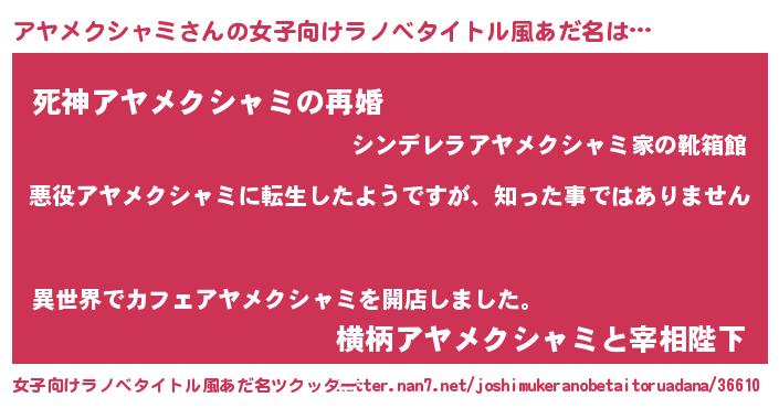 | 胡散臭い通販商品みたいなあだ名 | 『あなたにだけ特別に提供する100年もののヴィンテージワイン…その名も「アヤメクシャミ」』 |