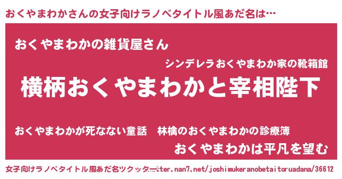 | 男性向けラノベタイトル風あだ名 | 『おくやまわかに滅ぼされるだけの簡単なお仕事です』 |