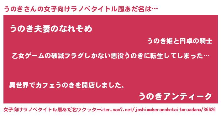 | ヘコむあだ名 | 『うのもー』『うのき(小並感)』 |