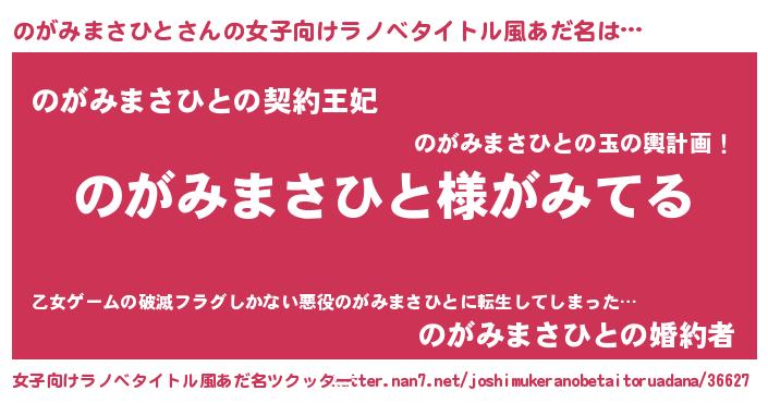 | 男性向けラノベタイトル風あだ名 | 『のがみまさひとの嫁は女の子じゃないと思った?』 |