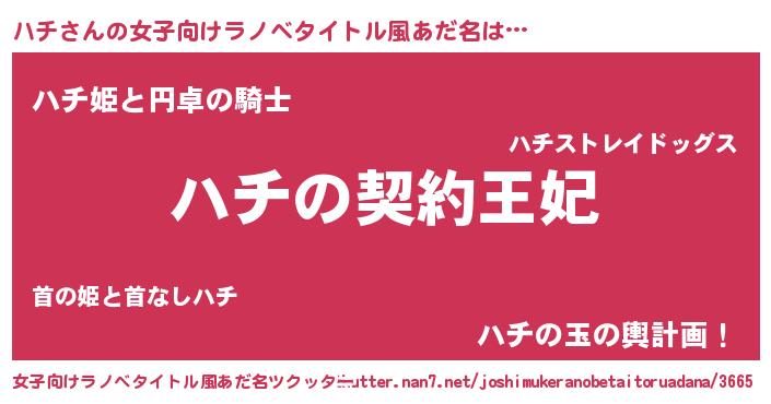 | 男性向けラノベタイトル風あだ名 | 『ハチという概念が存在しない退屈な世界 』 |