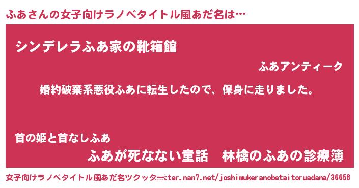 | 胡散臭い通販商品みたいなあだ名 | 『世界中を虜にした100年もののヴィンテージワイン…その名も「ふあ」』 |