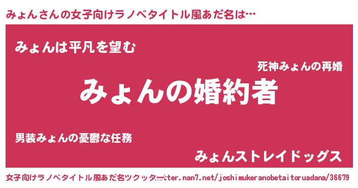 | 胡散臭い通販商品みたいなあだ名 | 『運命の人と巡り会える高級そうな絵画…その名も「みょん」』 |