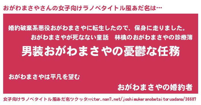 | 胡散臭い通販商品みたいなあだ名 | 『運命の人と巡り会える高級そうな壺…その名も「おがわまさや」』 |