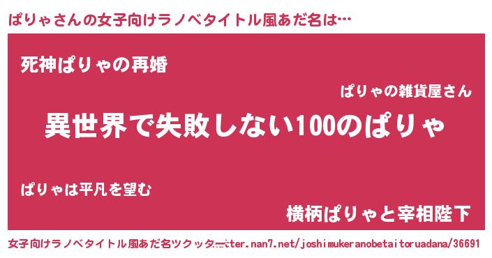| 胡散臭い通販商品みたいなあだ名 | 『絶対に幸福をもたらす招き猫…その名も「ぱりゃ」』 |