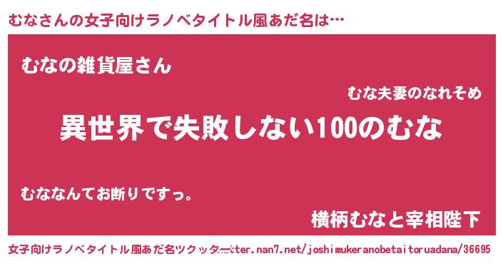| 胡散臭い通販商品みたいなあだ名 | 『絶対に幸福をもたらす水素水…その名も「むな」』 |
