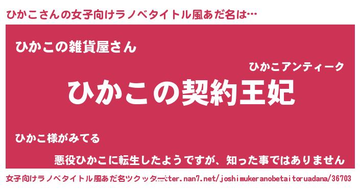 | 男性向けラノベタイトル風あだ名 | 『誰もが恐れるあのひかこが、ぼくの専属メイドになるようです。』 |