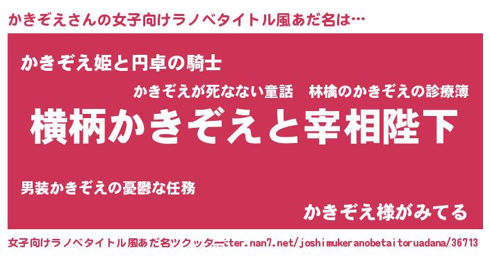 | 男性向けラノベタイトル風あだ名 | 『かきぞえに滅ぼされるだけの簡単なお仕事です』 |