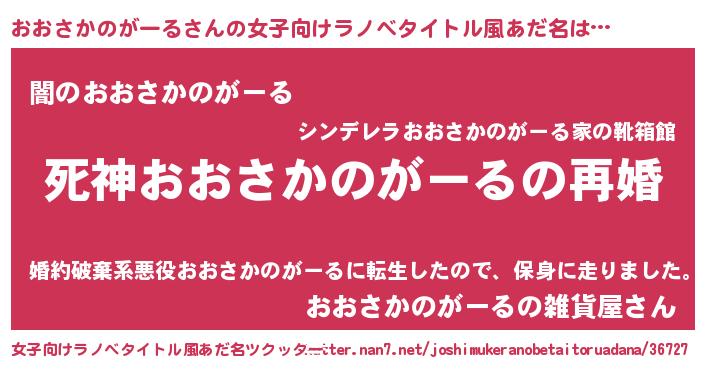 | ヒーロー風カッコイイあだ名 | 『慈愛の使者おおさかのがーる』 |