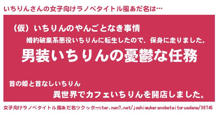 | 男性向けラノベタイトル風あだ名 | 『冴えないいちりんの育てかた』 |