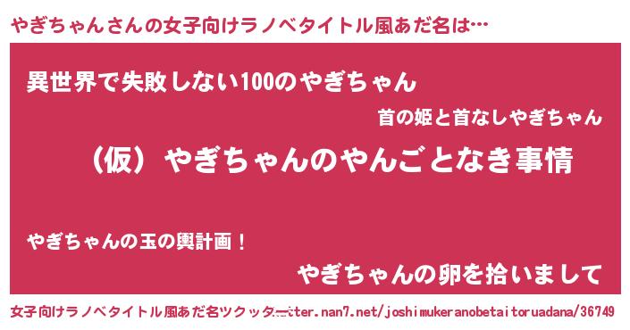 | 男性向けラノベタイトル風あだ名 | 『やぎちゃんの憂鬱』 |