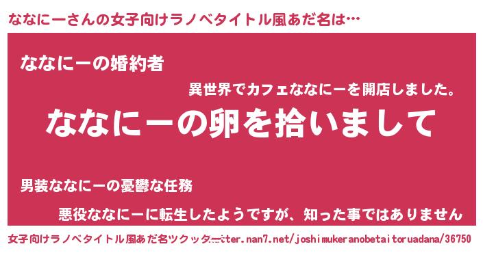 | 男性向けラノベタイトル風あだ名 | 『ダンジョンにななにーを求めるのは間違っているだろうか』 |