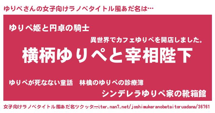 | 男性向けラノベタイトル風あだ名 | 『ゆりぺに滅ぼされるだけの簡単なお仕事です』 |