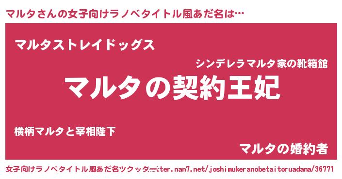 | 男性向けラノベタイトル風あだ名 | 『マルタという概念が存在しない退屈な世界 』 |