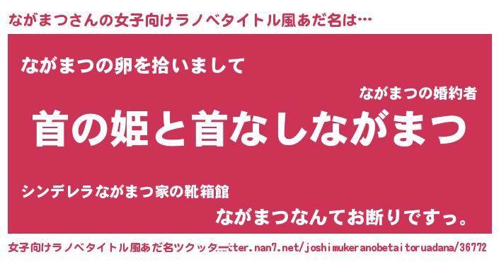 | 男性向けラノベタイトル風あだ名 | 『はたらくながまつさま!』 |