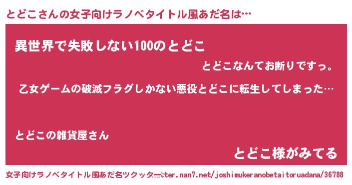 | ヘコむあだ名 | 『とどこ(苦笑)』『とどを』 |