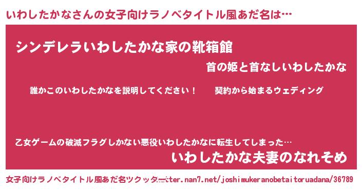 | 男性向けラノベタイトル風あだ名 | 『イワシタカナアートオンライン』 |