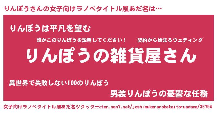 | 男性向けラノベタイトル風あだ名 | 『やはりりんぽうの青春ラブコメはまちがっている 』 |