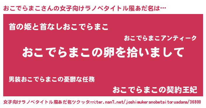 | 男性向けラノベタイトル風あだ名 | 『ダンジョンにおこでらまこを求めるのは間違っているだろうか』 |