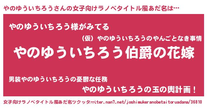 | 男性向けラノベタイトル風あだ名 | 『やはりやのゆういちろうの青春ラブコメはまちがっている 』 |