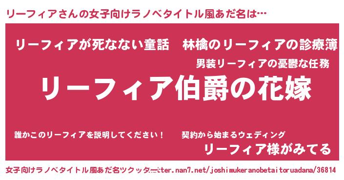 | 男性向けラノベタイトル風あだ名 | 『やはりリーフィアの青春ラブコメはまちがっている 』 |