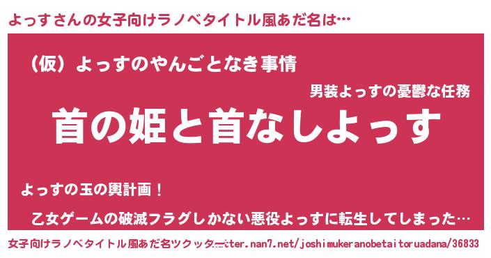 | 男性向けラノベタイトル風あだ名 | 『はたらくよっすさま!』『よっすの憂鬱』 |