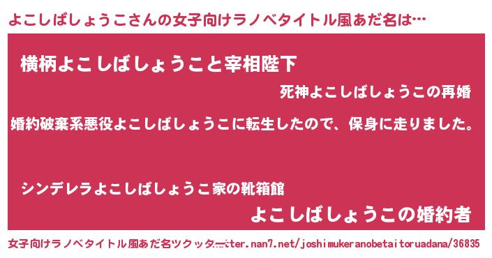 | 男性向けラノベタイトル風あだ名 | 『転生したらよこしばしょうこだった件』 |
