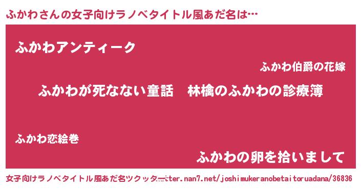 | 男性向けラノベタイトル風あだ名 | 『魔弾の王とふかわ』 |