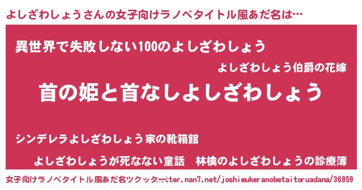 | 男性向けラノベタイトル風あだ名 | 『はたらくよしざわしょうさま!』 |