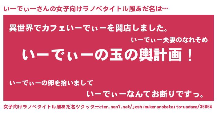 | 胡散臭い通販商品みたいなあだ名 | 『前代未聞の健康食品…その名も「いーでぃー」』 |