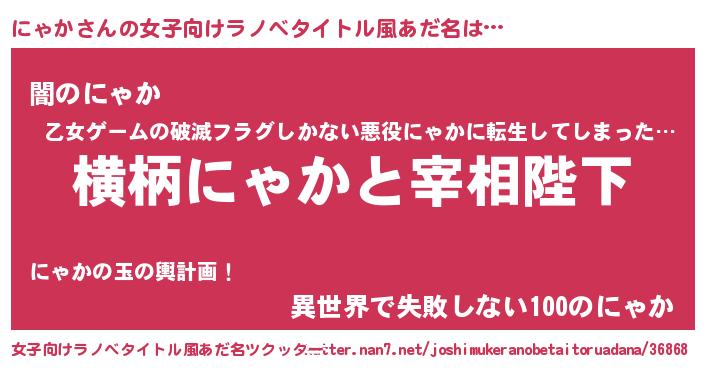 | 意味不明あだ名 | 『自称にゃか』『永久保存にゃか』 |
