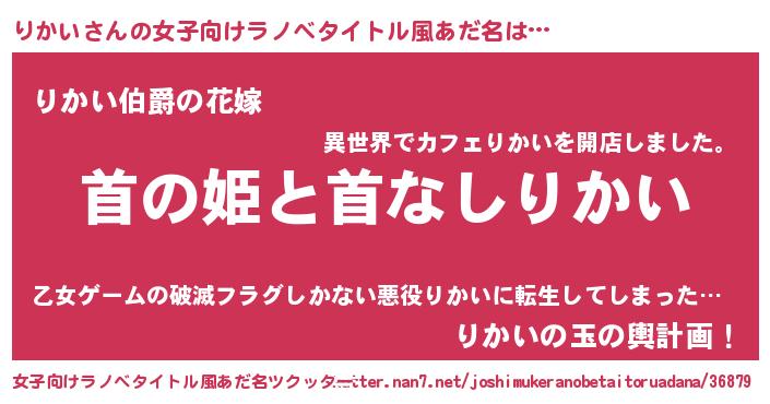 | 意味不明あだ名 | 『りかいフォーエバー』『永久保存りかい』 |