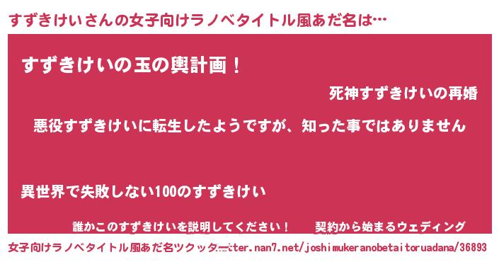 | 男性向けラノベタイトル風あだ名 | 『この素晴らしい世界にすずきけいを!』 |