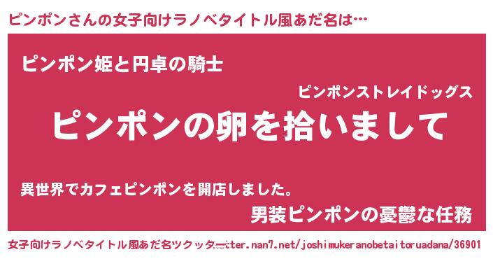 | 男性向けラノベタイトル風あだ名 | 『ピンポンの嫁は女の子じゃないと思った?』 |