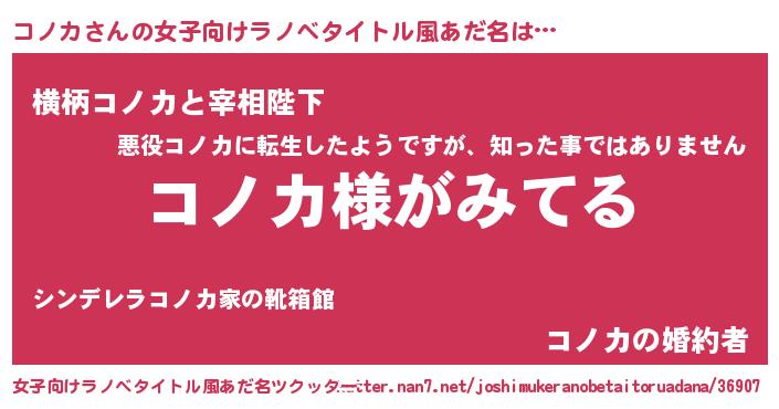 | 男性向けラノベタイトル風あだ名 | 『コノカの嫁は女の子じゃないと思った?』 |