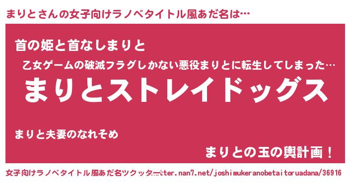 | 意味不明あだ名 | 『自称まりと』『しいたけ科まりと属』 |