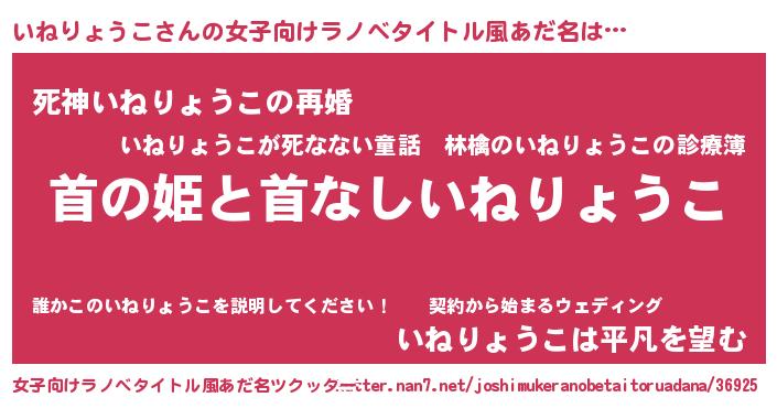 | 男性向けラノベタイトル風あだ名 | 『はたらくいねりょうこさま!』 |