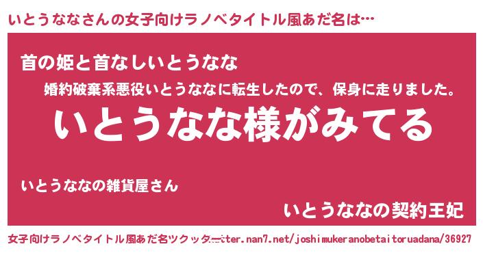 | 男性向けラノベタイトル風あだ名 | 『いとうななの嫁は女の子じゃないと思った?』 |