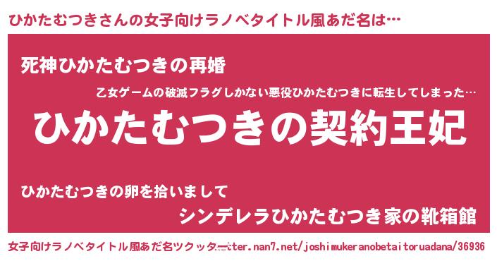 | 胡散臭い通販商品みたいなあだ名 | 『来世でも幸せになれる健康食品…その名も「ひかたむつき」』 |