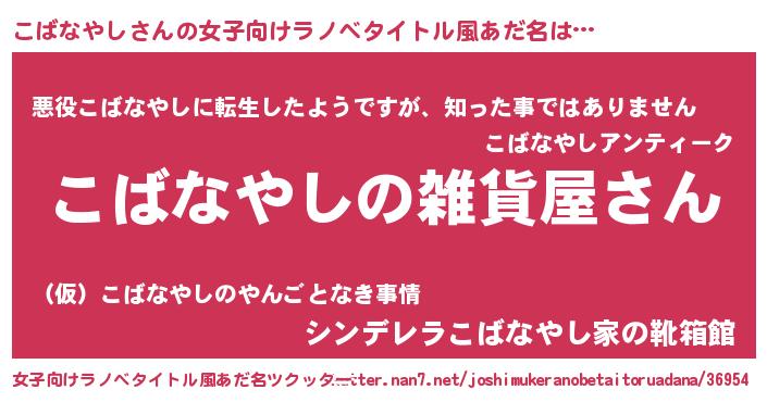 | 男性向けラノベタイトル風あだ名 | 『やはりこばなやしの青春ラブコメはまちがっている 』 |
